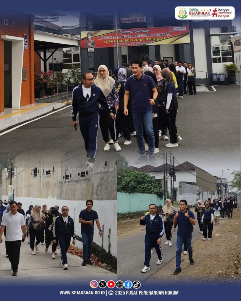 Kejari Mojokerto Membangun Budaya Kerja Positif Dengan Senam Pagi dan Jalan Bersama