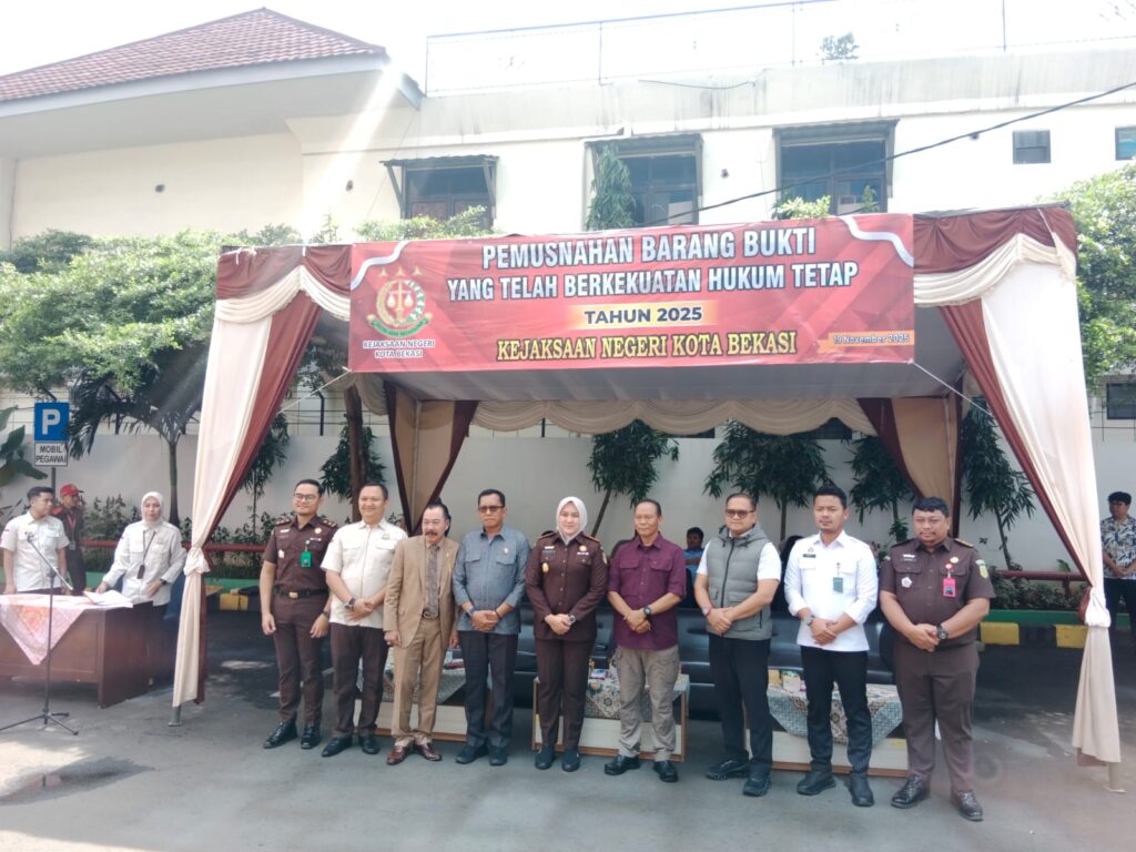 Pemusnahan dilakukan dengan disaksikan unsur Forkopimda, pejabat struktural Kejaksaan Negeri Kota Bekasi, aparat penegak hukum, serta perwakilan instansi terkait. Kegiatan berlangsung tertib, transparan, dan sesuai prosedur.