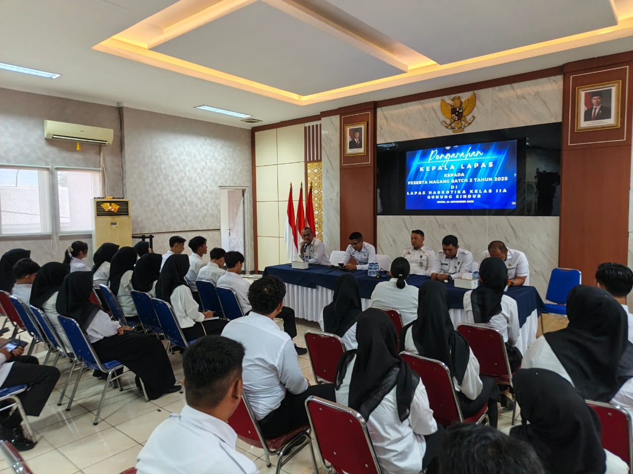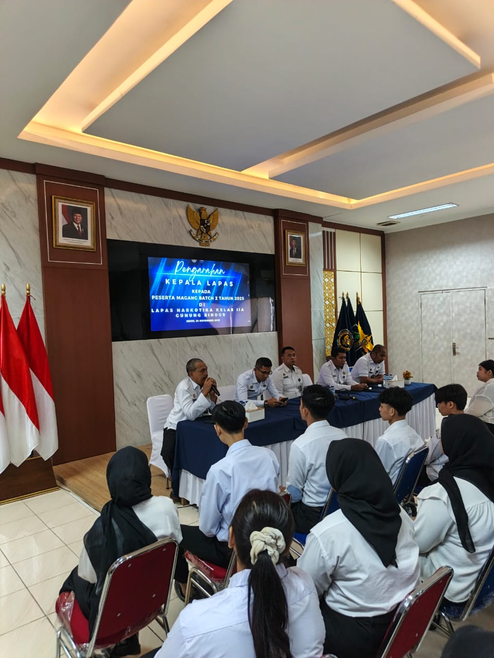 Pada Selasa, 25 November 2025, Lapas Narkotika Gunung Sindur menggelar kegiatan pengarahan yang dipimpin langsung oleh Kepala Lapas, Bambang Wijanarko, bertempat di Aula Utama Lapas Narkotika Gunung Sindur. Kegiatan ini dihadiri oleh jajaran pejabat struktural serta staf terkait sebagai bagian dari upaya peningkatan kualitas pelaksanaan program pembinaan.